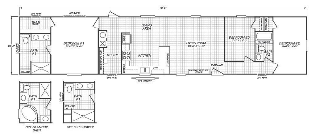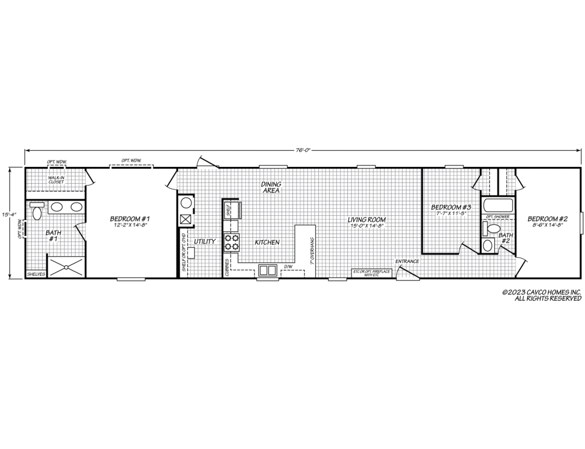 Welcome to your new Texas Single-wide by Cavco Homes The “American Dream 16763D“. The American Dream 16763D has 3 Bedrooms, 2 bathrooms and spans 1178 square feet, offering a comfortable and versatile living space. With a width of 16 feet and a length of 76 feet, this home provides a balanced layout suitable for various locations and lifestyles.
