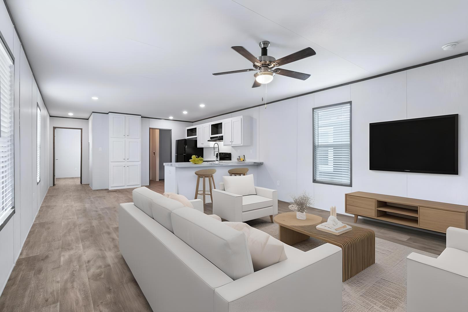 Welcome to your new Texas Single-wide by Titanium The “Atlantis“. The Atlantis has 3 Bedrooms, 2 bathrooms and spans 1191 square feet, offering a comfortable and versatile living space. With a width of 16 feet and a length of 76 feet, this home provides a balanced layout suitable for various locations and lifestyles.