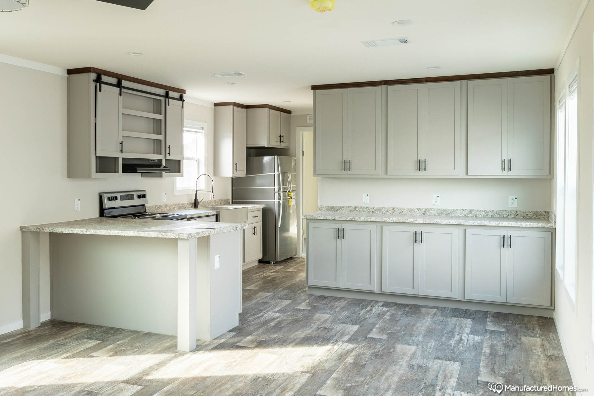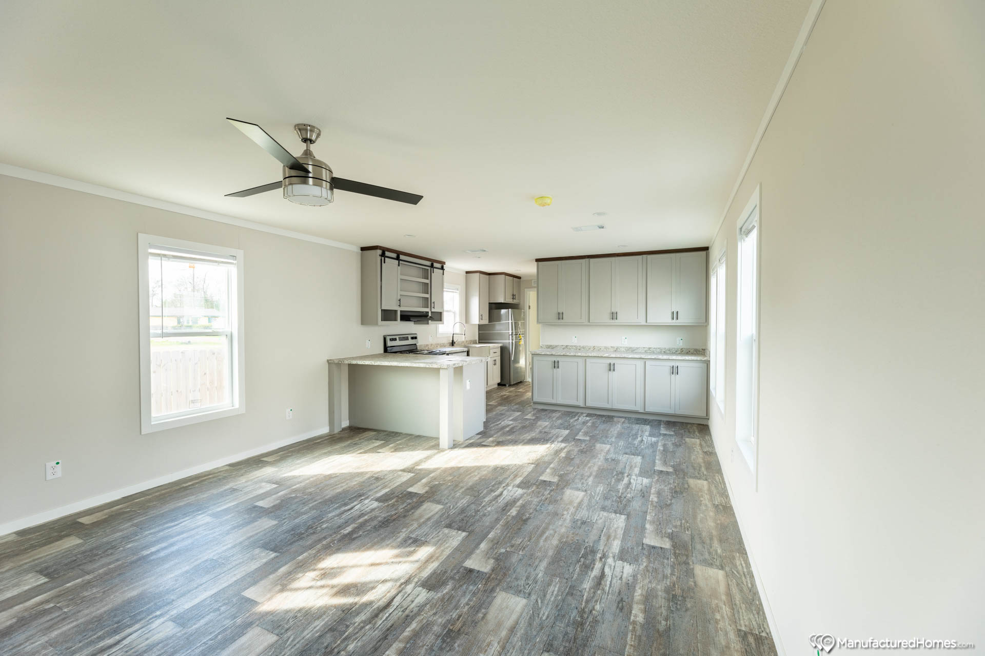 Welcome to your new Texas Single-wide by Skyline Homes The “Claiborne“. The Claiborne has 3 Bedrooms, 2 bathrooms and spans 1153 square feet, offering a comfortable and versatile living space. With a width of 16 feet and a length of 76 feet, this home provides a balanced layout suitable for various locations and lifestyles.
